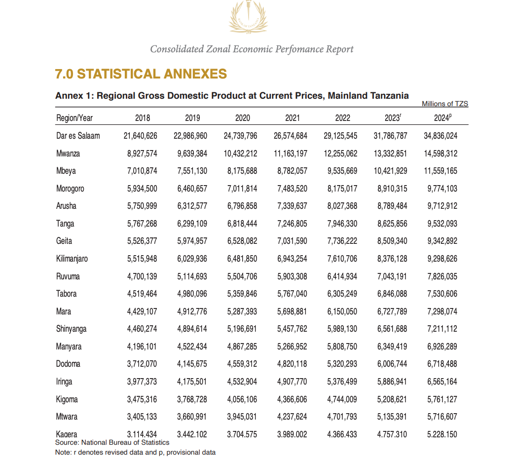 Mikoa 10 Tajiri Tanzania 2025 (Consolidated Zonal Economic Perfomance Report)