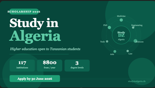 #StudyInAlgeria#ScholarshipOpportunity#AfricanStudents#StudyAbroad2026#HigherEducation#Tanzania#AffordableEducation